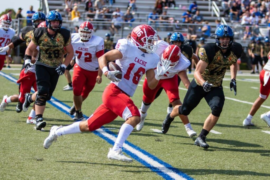 The Cache Bulldogs look to bounce back after a five and five season a year ago and bring back plenty of pieces to do just that. Fourth year head coach Faron Griffin thinks the Bulldogs have had a great offseason, making next season something to look forward to. On offense, the Bulldogs bring back five starters from last years team. They look to run a lot of formations and motion to cause confusion and alignment difficulty for opposing teams. On the offensive line is Jeffrey Paddyaker (6-3, 325, Sr.), who gets praise from his coach. “Jeffrey is a big, strong, physical athlete with good feet and a little nastiness. He will be a force on both sides of the ball,” Griffin said. Lining up next to Paddyaker is offensive lineman Kenny Wermy (6-6, 295, Jr.). Wermy brings more experience to the line, after getting playing time as a sophomore the year before. Jaylen Niedo (6-4, 220, Sr.) is a name people should pay attention to. After a successful 2020 season playing both tight end and defensive end, the coaches expect more this year. Playing the receiver positions, Reid Lyon (6-0, 190, Sr.) and Braden Castro (5-7, 165, Jr.) bring quickness and athleticism to the field and seek more touches in the upcoming season. Zack Johnson (6-0, 205, Sr.) will be playing the running back position and looks to use his explosiveness and speed to have a successful senior campaign.